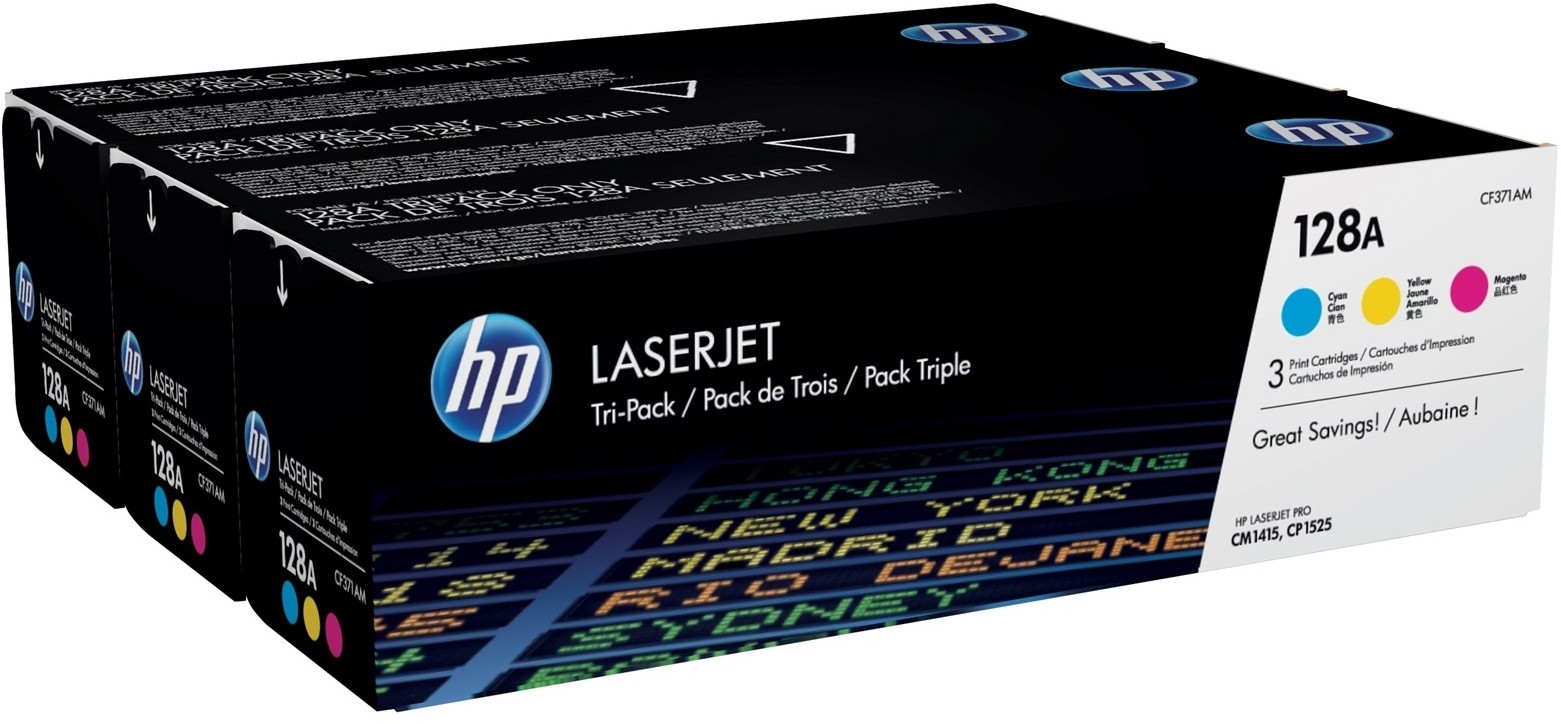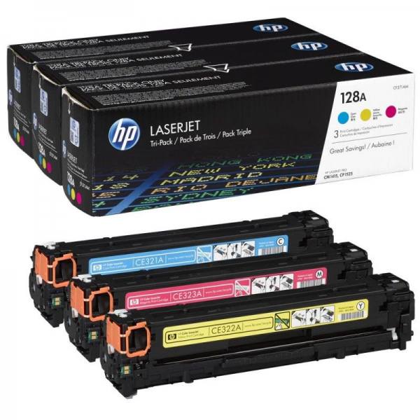 Le pack de 3 toners couleur HP LaserJet d'origine HP 128A Cyan/Magenta/Jaune est un ensemble de trois toners de qualité supérieure pour votre imprimante HP LaserJet. Ce pack contient un toner cyan, un toner magenta et un toner jaune, tous fabriqués par HP pour offrir des performances fiables et de haute qualité. Ces toners sont compatibles avec plusieurs modèles d'imprimantes HP LaserJet, notamment les HP LaserJet Pro CM1415 et CP1525.