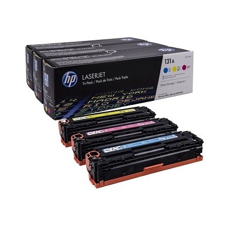 Il s'agit d'un pack de 3 toners couleur d'origine HP LaserJet, comprenant une cartouche de toner cyan, magenta et jaune. Ces toners sont compatibles avec les imprimantes HP LaserJet Pro 200 Color M251 et HP LaserJet Pro MFP M276. Chaque cartouche de toner permet d'imprimer environ 1800 pages en couleur. La technologie d'impression utilisée est le laser. Le poids total du pack est d'environ 1,8 kg.